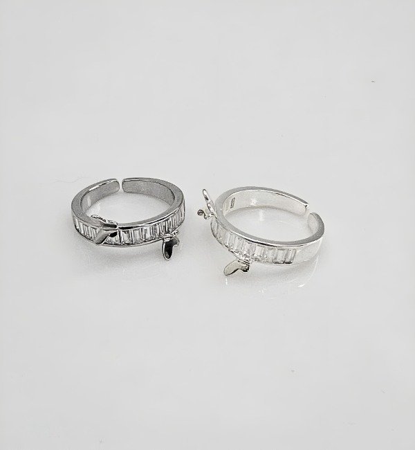 Anillo Mariposas con cristal cubic en Acero Blanco, Acero Blanco, regulable.