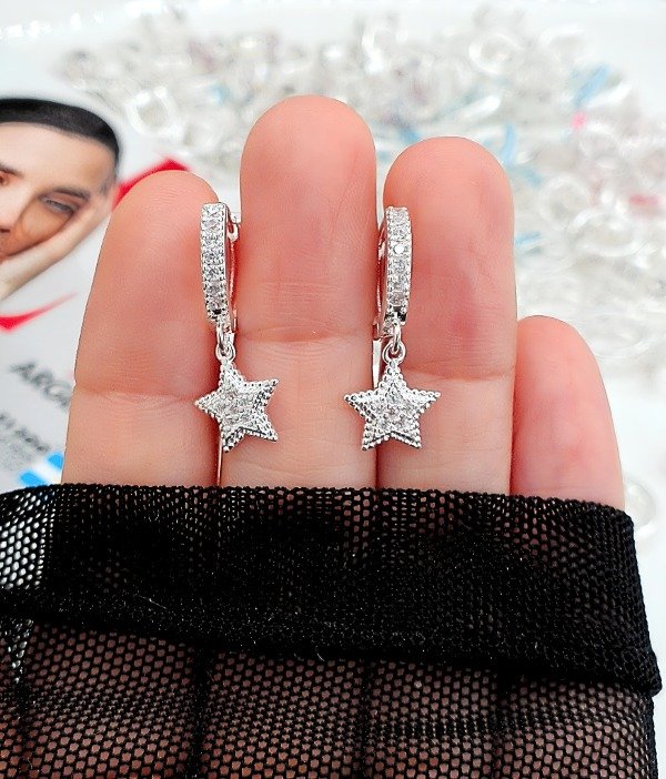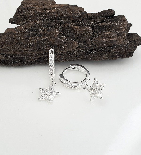 Argollas Huggiescon cristal Cubic incrustado en Acero Blanco Premium .