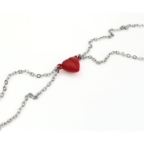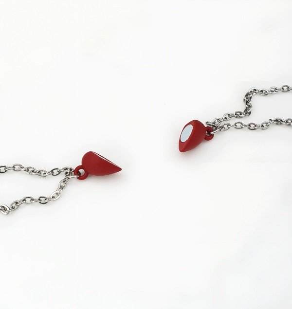 Conjunto de 2 cadenas de Acero Quirúrgico y Dije de Corazón partido imantado para compartir +bolsa de organza .