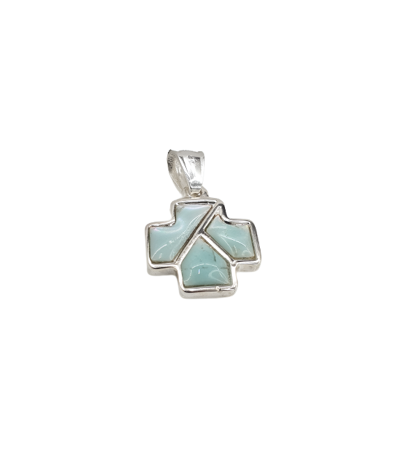 Cruz Esmaltada Turquesa en Acero Blanco .