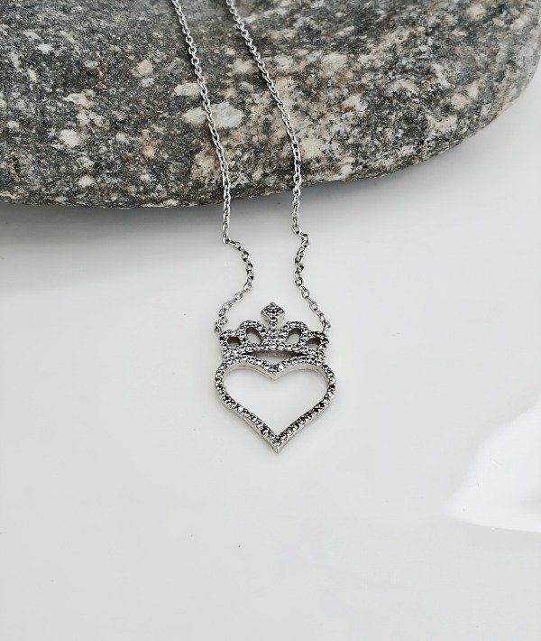Collar de Corona amor real ,micropave con cristales Cubic en Plata 925 Rodinada .