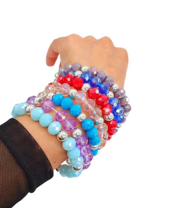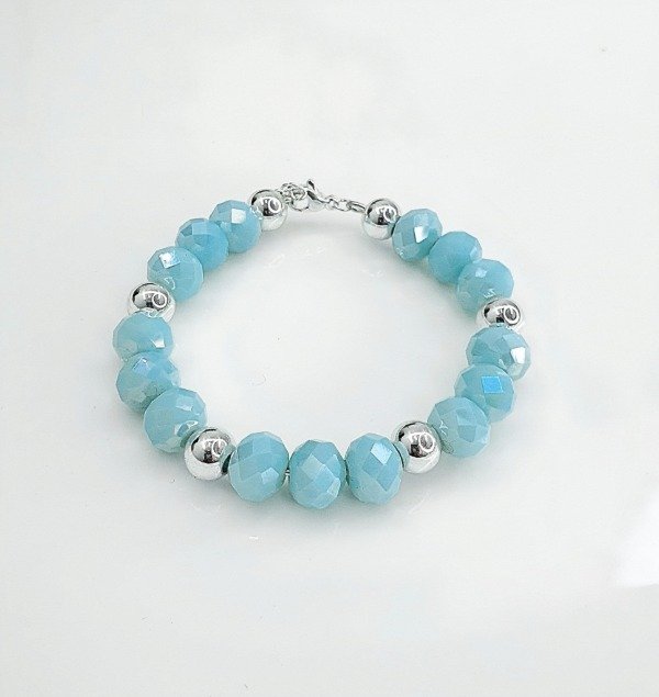 Pulsera de cristales con Bolitas y cierres de Acero Blanco .