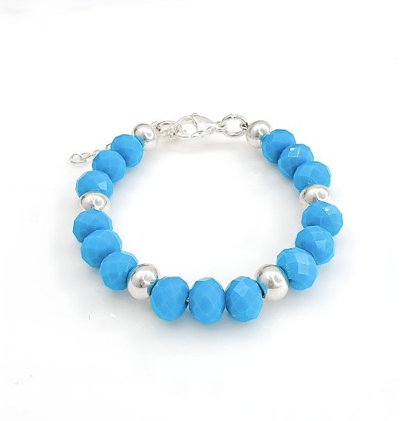 Pulsera de cristales con Bolitas y cierres de Acero Blanco .