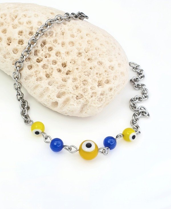 Tobillera de acero quirúrgico y piedra de ojo de gato .