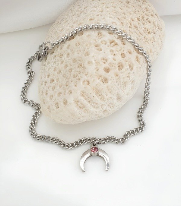 Tobillera de acero quirúrgico de 25 cm con Cristal rosa .