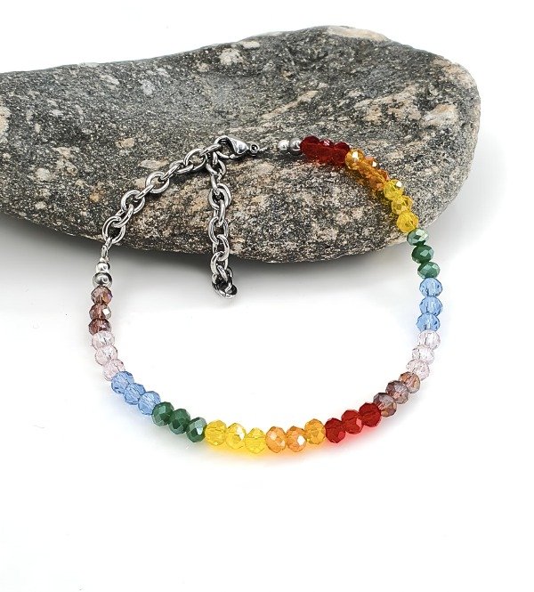 Tobillera de Cristales con cadena de alargue y cierre de acero quirúrgico .