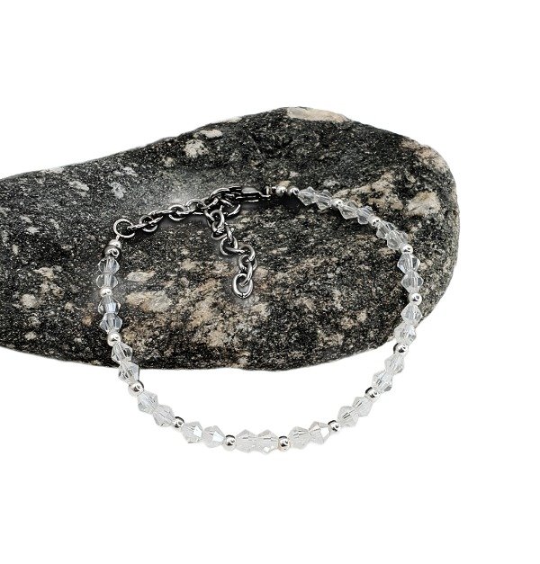 Tobillera de Cristales y burbujitas de acero con cadena de alargue y cierre de acero quirúrgico .